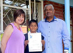 Akeem Abrahams, a Grade 5 learner of Mary Help of Christians Primary in Paarl, was chosen as one of the Top Ten Edublox Learners for 2014. His prize money and certificate were presented to him at school. His mother, Celeste Abrahams, wrote: Akeem struggled with both English (reading and spelling), Mathematics and remembering anything he had learned. He just couldn't remember the work. He repeated Grade 2 and we decided to enrol him in a program for children with learning difficulties. In Grade 4 his teacher called us in and said how much he was struggling and might not pass the year without extra help. Akeem already had a low self-esteem due to him repeating a grade and because he was struggling with his school work. He refused to go to school, because it was torture for him. He read very slowly and had to sound out almost every word. He could not remember what he had learned and this frustrated him and us. He worried constantly about repeating a year again and this made him aggressive and angry most of the time. Akeem was stressed and cried a lot! He asked questions like: "Why am I stupid and dumb?" "Why can't I read like my friends?" "Why can't I remember my work?" He would come home from school and say how embarrassed he was when he had to read in class and that the children made fun of him. This broke our hearts! By the Grace of God I saw an ad in the newspaper about Edublox. At this time we as a family were at an all time low, because we did not know how to help our son. Akeem did not want to go for extra lessons, because he felt nothing or no-one could help him. Akeem started his Edublox journey in May 2014. He attended a 10-day intensive 1-on-1 course, and then continued to attend two lessons per week. His mother continues the story: Akeem became more self-confident; he even offered to read to us. No more begging and bribing him to do so. He would read the titles of movies on the TV, something he never attempted in the past. I could see that he became more relaxed, did not worry that much anymore, because he started to remember what he had learned and could now recognise words and sounds. His overall grades improved tremendously. Akeem failed terms 1 and 2, then started with Edublox and passed the remaining terms and the year. Akeem no longer dreads going to school, he actually enjoys it now. His teacher thanked us for sending him to Edublox. She saw a major improvement in him and in his schoolwork. Just to see the look on my son's face when we opened his report and saw that he had passed the year was a priceless moment for all of us. Akeem also thanked us for sending him to Edublox. When I first told him that I wanted to send him for extra help, he did not want to go, but now he can't wait for his lessons at Edublox. He loves it and loves his teachers.Thank you Louna and all the tutors at Edublox, you really made a big difference in our lives. |