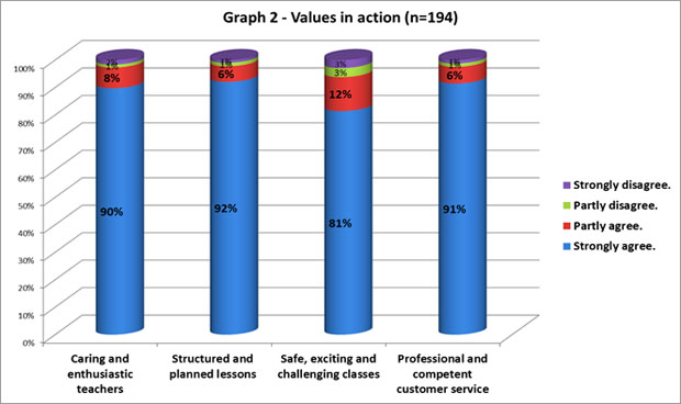 The survey results in Graph 1 show how satisfied customers are with the progress that learners achieve at school. Progress is determined by improvement in school performance, increase in reading and learning abilities, more confidence, and a positive attitude towards learning.